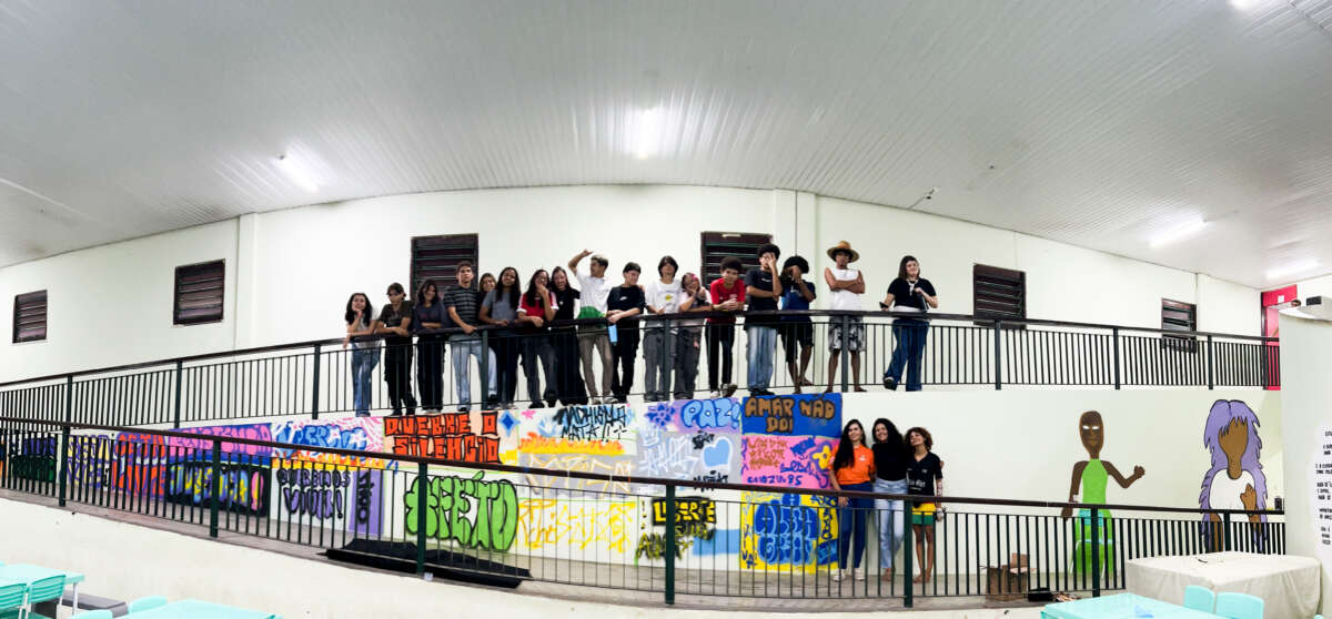 A atividade teve como foco a prevenção e o enfrentamento à violência de gênero, utilizando o graffiti como ferramenta de expressão e reflexão. Durante a vivência, os jovens dialogaram sobre desigualdades, respeito, direitos e formas de combater abusos e violências que atingem, principalmente, meninas e mulheres. A pintura coletiva permitiu que cada participante expressasse suas percepções sobre o tema, transformando o espaço escolar em um mural de conscientização.